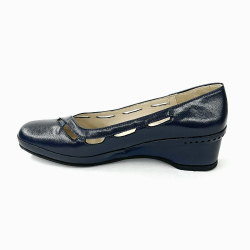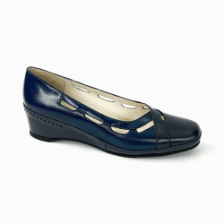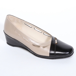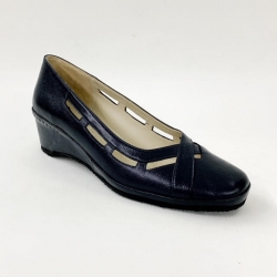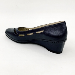 Sapato Anabela em couro com recortes lineares e solado em crepe