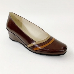 O salto anabela revestido em couro garante estabilidade e conforto para uso prolongado, um modelo para quem valoriza elegância discreta, conforto refinado e autenticidade.